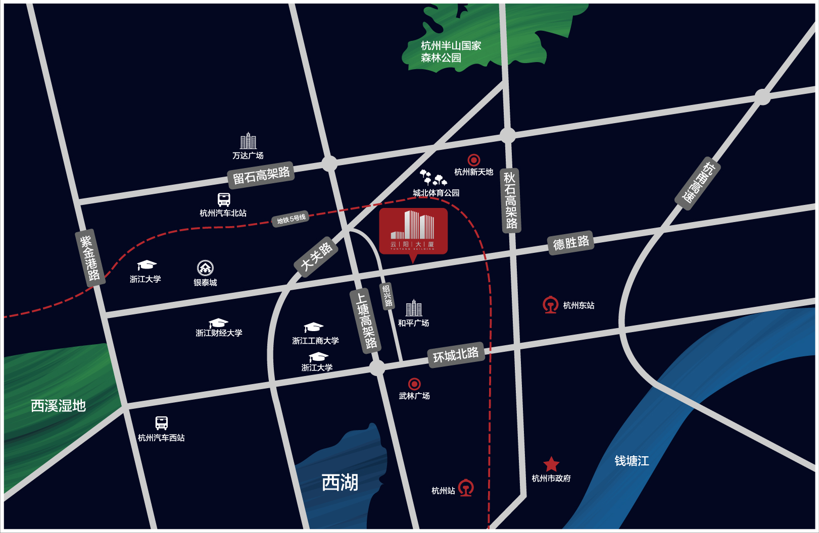 云阳大厦位于杭州下城区三塘单元,交通四通八达,德胜路、绍兴路通达全城,距在建地铁5号线香积寺路站仅约1公里。项目坐拥跨贸小镇、电竞小镇,与新天地商圈、和平商圈无缝连接,更有600亩城北生态体育公园、杭氧杭锅国际旅游综合体、城北商业中心等强势配套环绕。