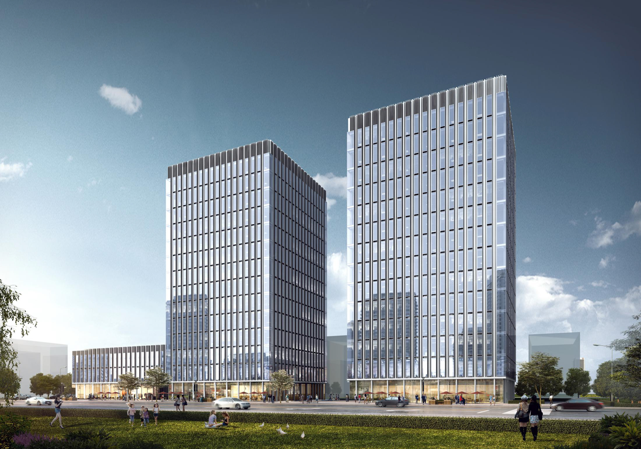 在项目的产品定位上,突破以往写字楼设计,产品规划设计了双子写字楼、主题商铺、高端精品酒店三种业态,将打造一个集商务办公、购物休闲、酒店居住、社交游憩的高端生活体系。